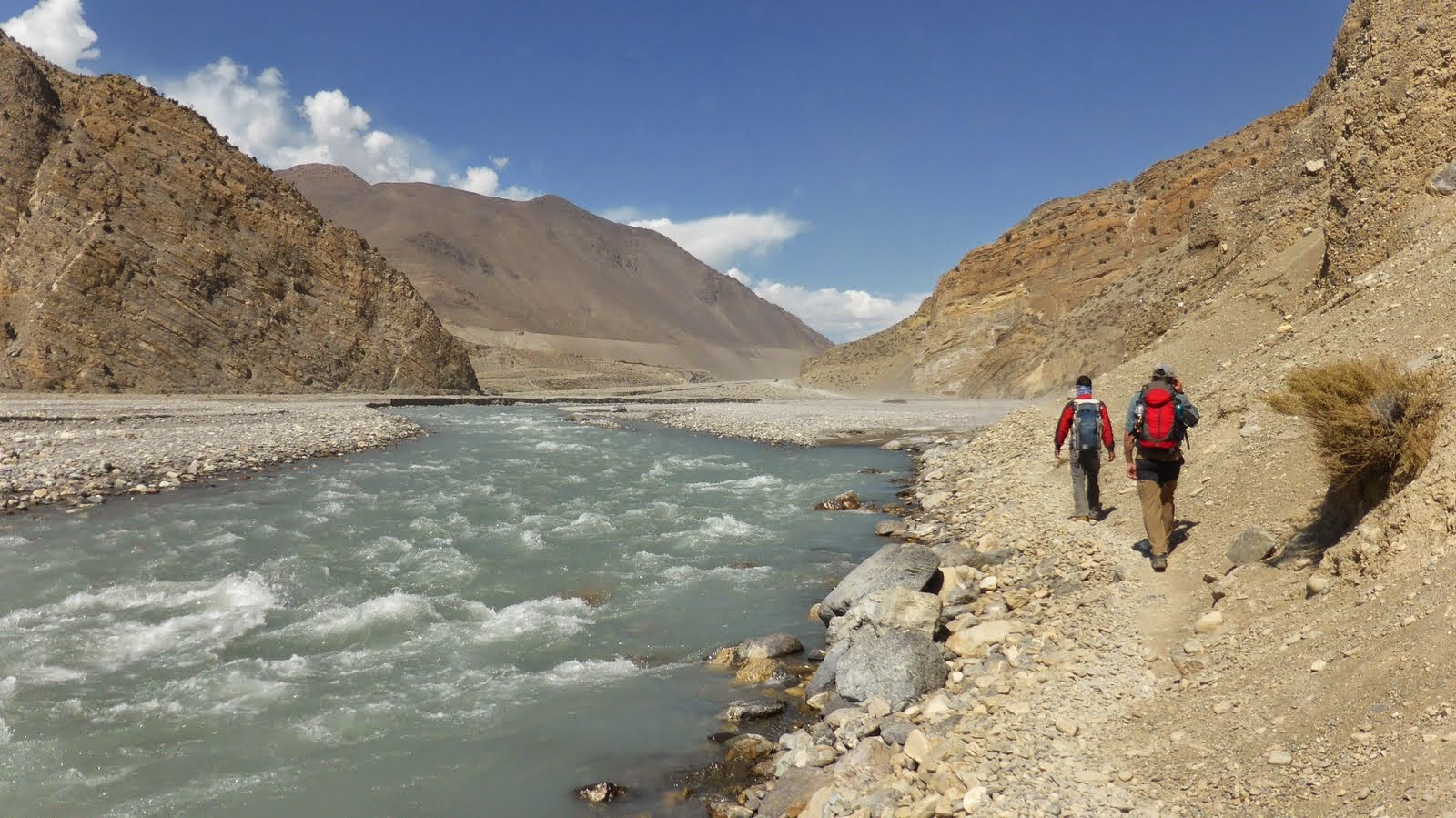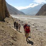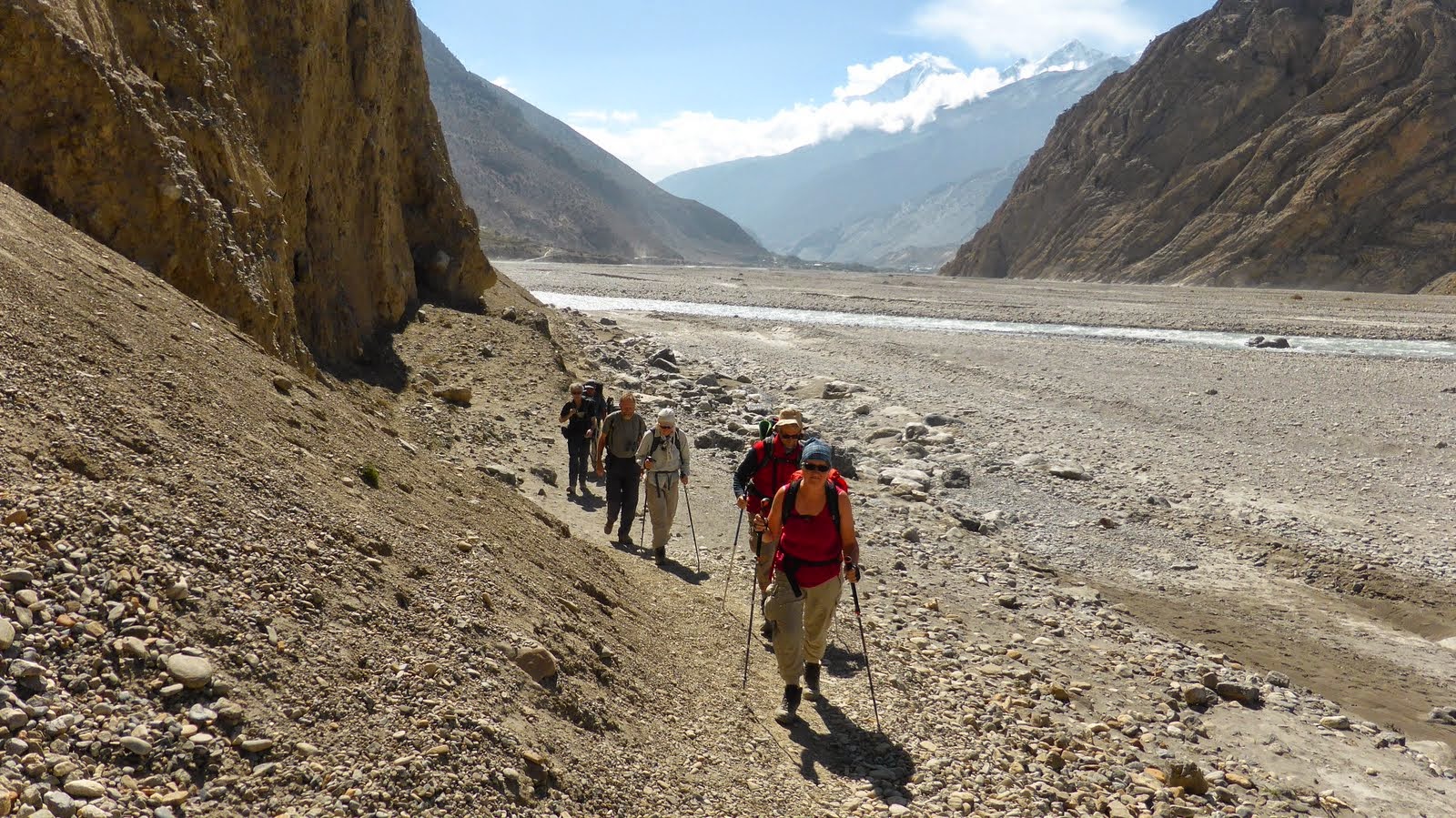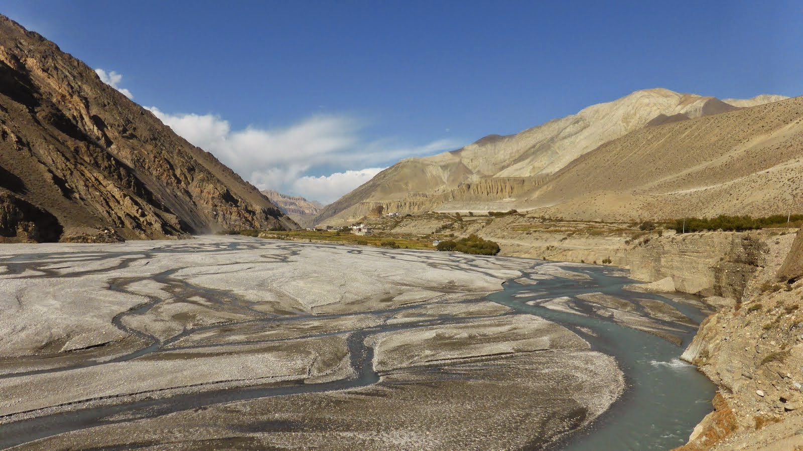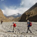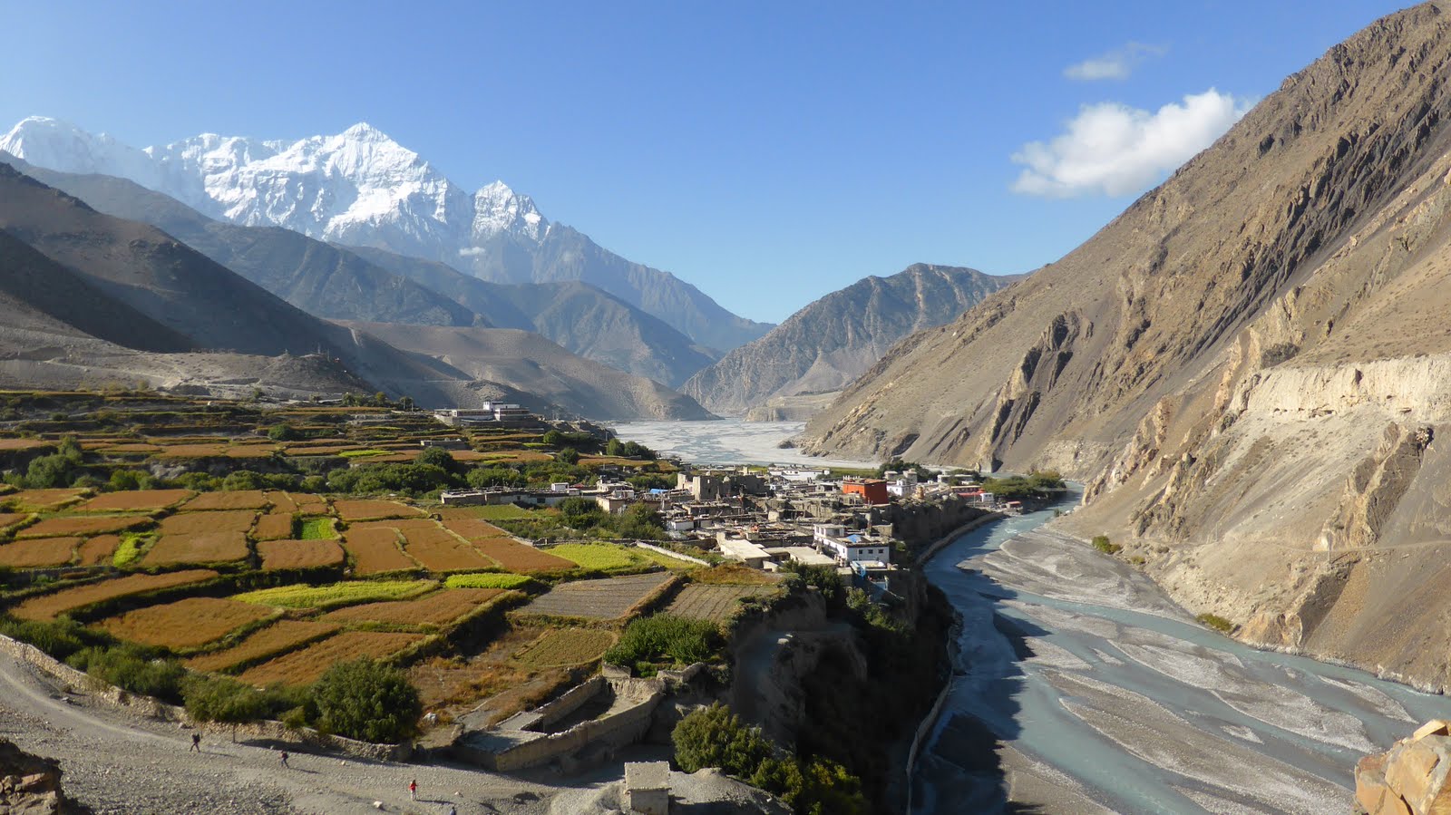 Descend gradually through fields and poplar groves, then into the Kali Gandaki river valley. Follow the valley southwards to Jomsom. The Kali Gandaki valley here is called the Thak Khola, from the ethnic group the Thakalis, the main inhabitants of this area.