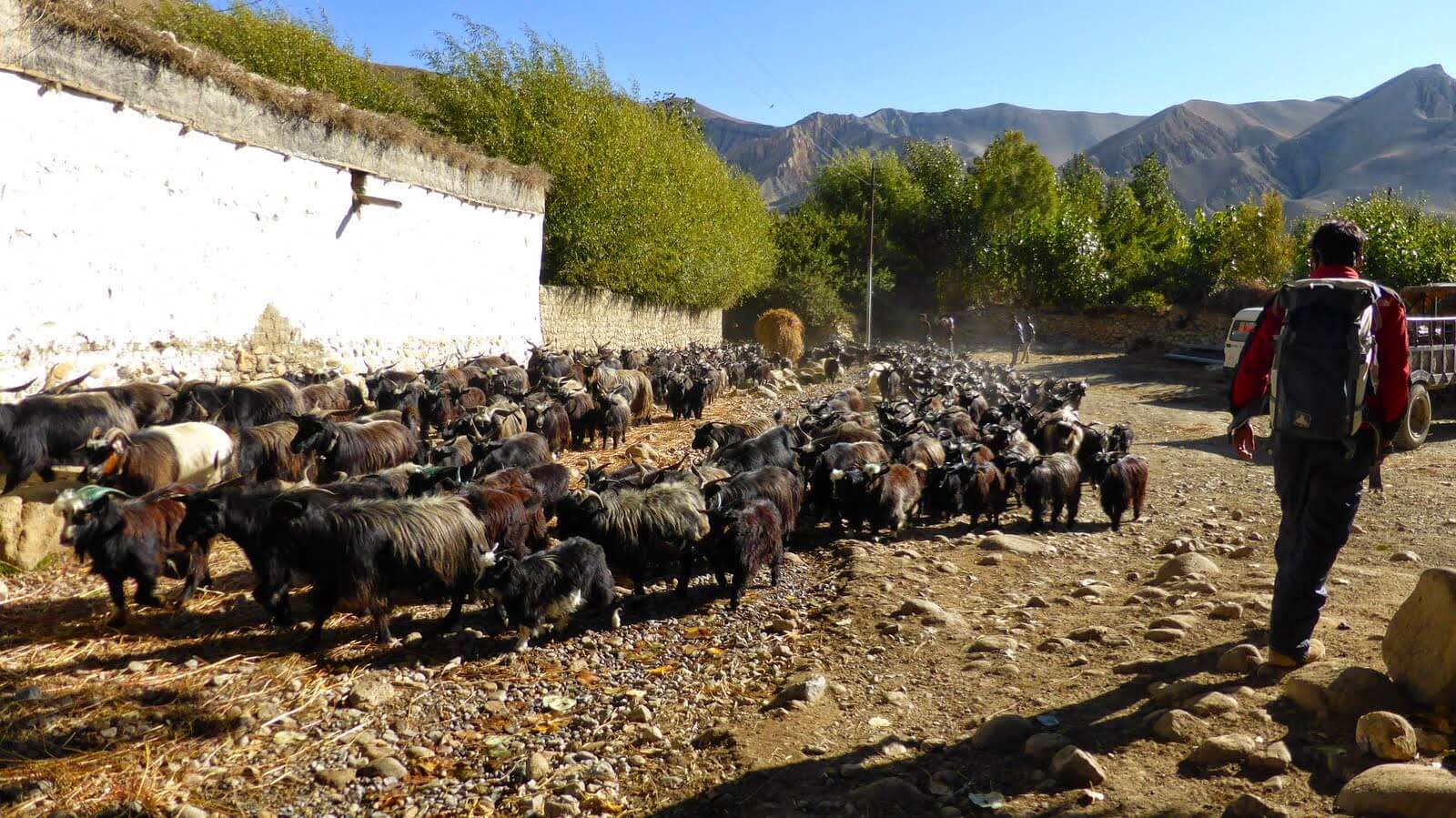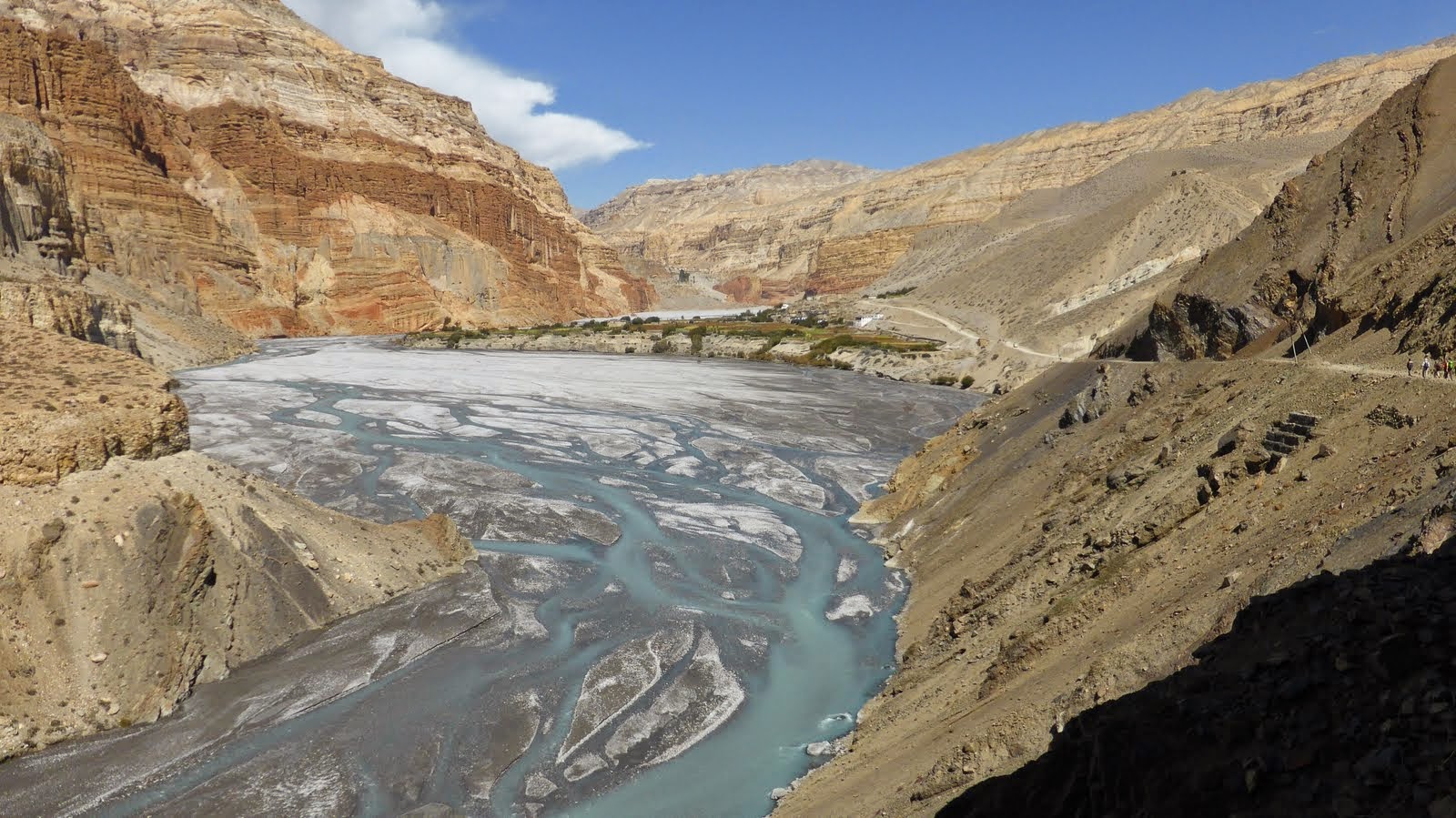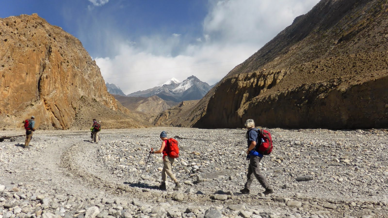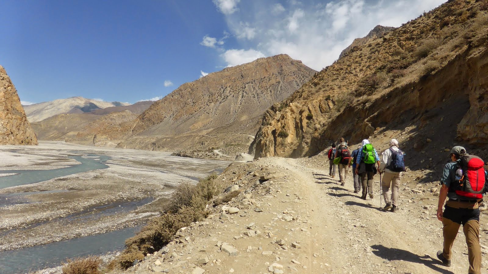 Descend gradually through fields and poplar groves, then into the Kali Gandaki river valley. Follow the valley southwards to Jomsom. The Kali Gandaki valley here is called the Thak Khola, from the ethnic group the Thakalis, the main inhabitants of this area.
