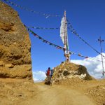 From Chaile climb the steep path carved out of the mountain. On the ridge is a small village known as Sammar. Stop for rest, and walk on thee main trail that continually ascends to a ridge (3800), then descend to make another climb to a pass. Make a short descend to Syangboche. It is stopping place for traders and travelers. There is an alternative path that leads to a cave nestled deep in the valley where there are carvings of Many deities. The name of cave is Rongbyung Chorten. These cave is used by the Lamas (Buddhist priest) for meditation and prayer. From cave the walk to Syangbmochen is steep.