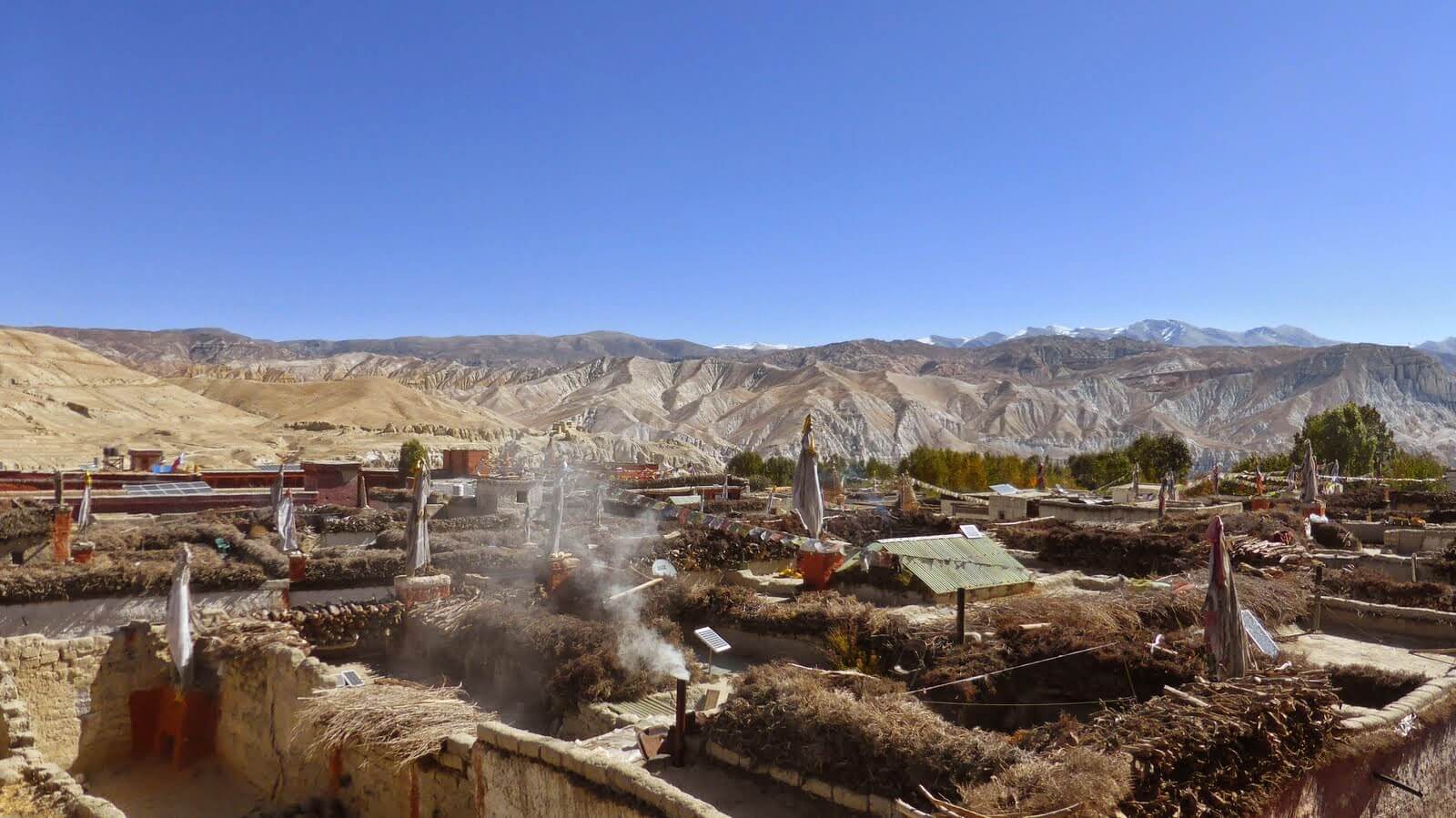 Today is a long walk but interesting and otherside of Mustang that not many trekkers follow. We have to push a little bit harder for uphill until Pha, followed by 4 to 5 hours of single track which undulates along the ridgeline, before an epic descent down to Chuksang. The scenery on this day is also epic. It's a ridgeline descent, with some short climbs and amazing views. Some of the best views of Annapurna, Dhaulagiri and Nilgiri can be had on this day.